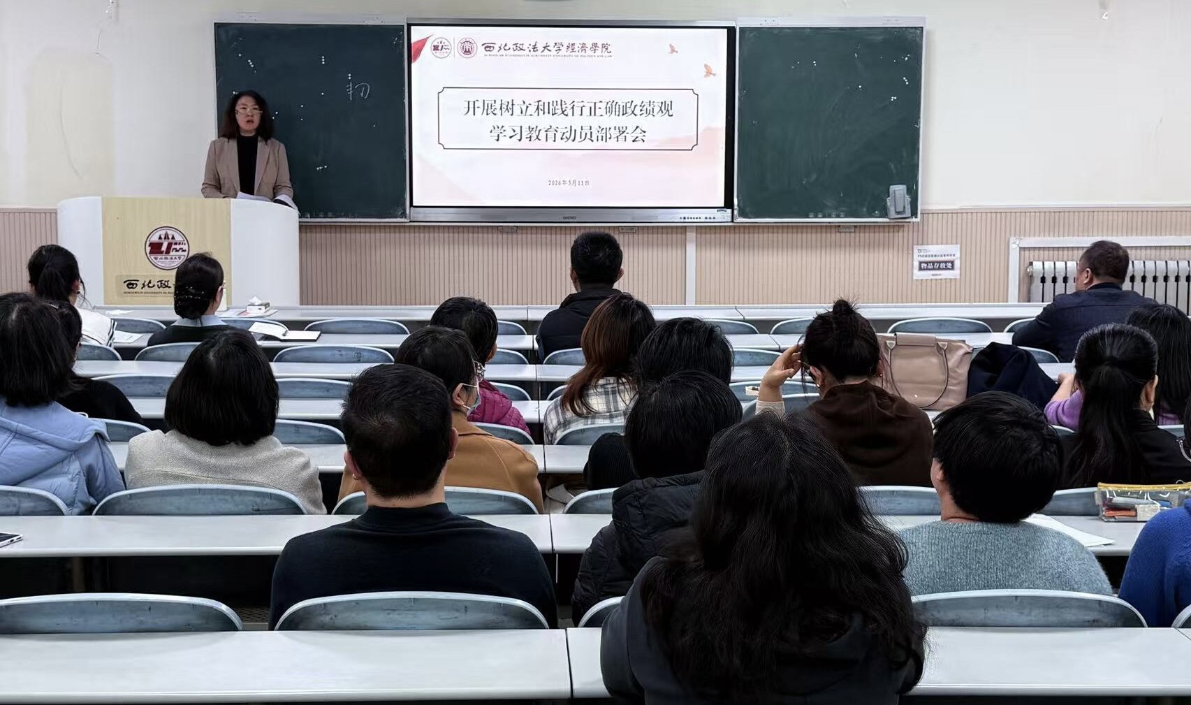 3月11日,pg电子app 召开关于开展树立和践行正确政绩观学习教育动员部署会。全体班子成员及教职工参会,学院党委书记李建梅主持会议。