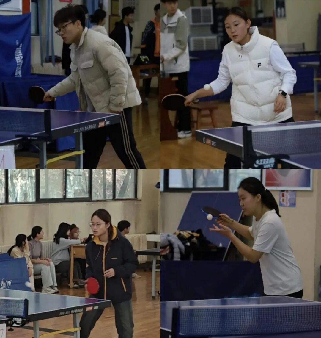 代表队由2023 级程婷,2024 级雷梦祥,2025 级肖芋峰、陶楚奇、孙泽洋、杨佳悦、张今熙共七名同学组成,他们以球会友、奋勇争先,既展现了乒乓运动的灵动与热血,也传递了永不言弃的拼搏精神。